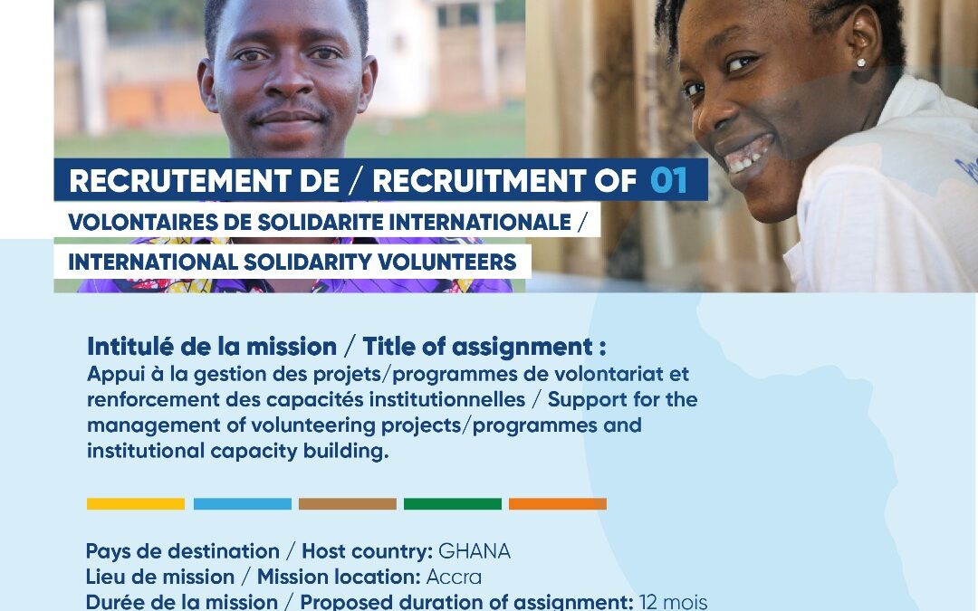 ANVT and France Volontaires are recruiting a VSI to support the management of volunteer projects/programmes and strengthen the institutional capacity of NYA Ghana