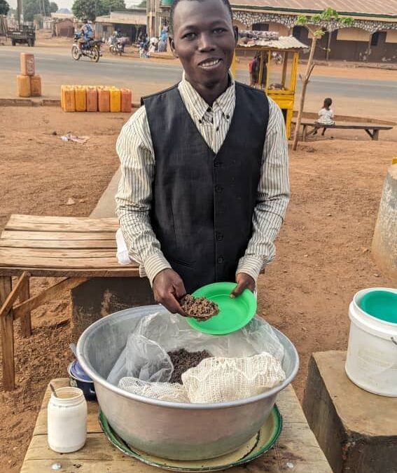 7 mars 2025KONDIA Moutarou, Volontaire d’Engagement Citoyen à Kabou, cache une histoire touchante derrière son sourire timide. Orphelin dès son plus jeune âge, il a très vite pris conscience des défis à relever pour construire un avenir épanoui. Audacieux et ambitieux, il refuse de laisser son statut d’orphelin freiner sa réussite. Privé de soutien moral et financier, Moutarou a su tirer profit des formations en entrepreneuriat reçues durant son volontariat. Grâce à ces apprentissages, il a lancé sa propre activité : la vente de couscous d’igname. Cette initiative lui permet, pas à pas, d’accéder à son indépendance financière.