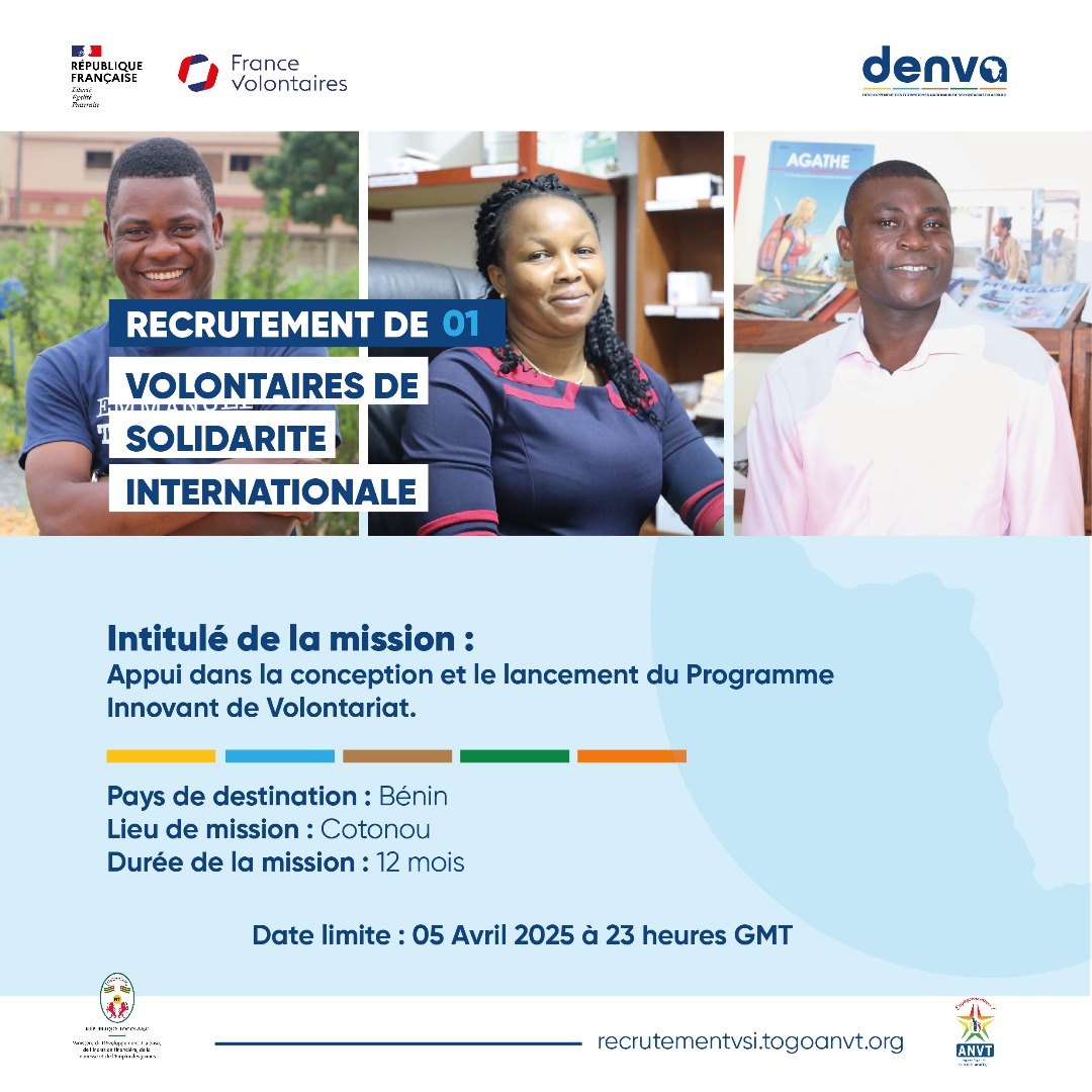 L’objectif est de renforcer l’équipe en charge du volontariat pour concevoir et participer à la mise en œuvre du programme innovant de volontariat de développement national au Bénin.